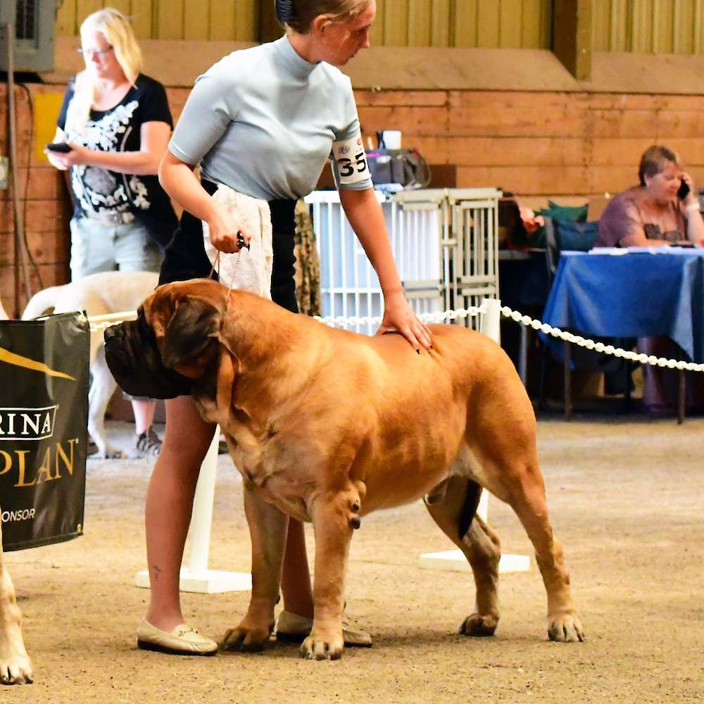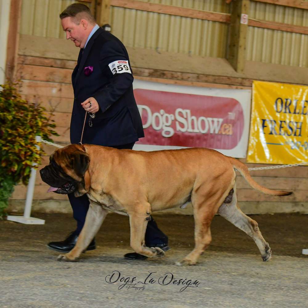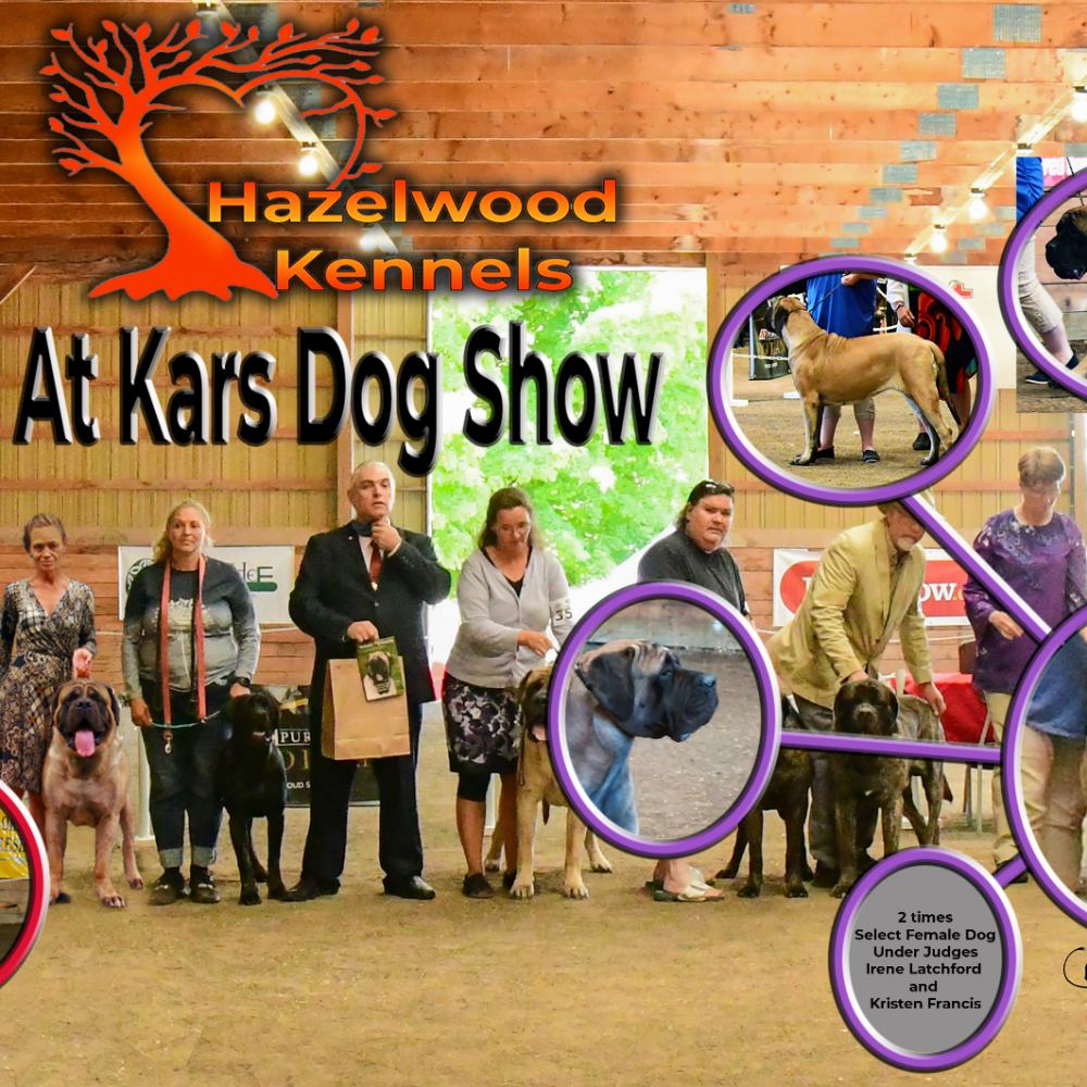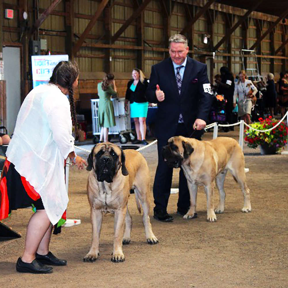 In July of 2022, we attended Kars in Lombardy, Ontario, close to Ottawa, Ontario. This was the largest turn out of mastiffs we've had to date and there were 14 mastiffs and a breeder judge for one of the show. It was a great time and hopefully we can get out to more shows with mastiffs.