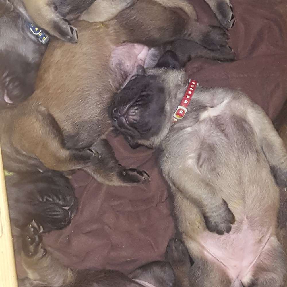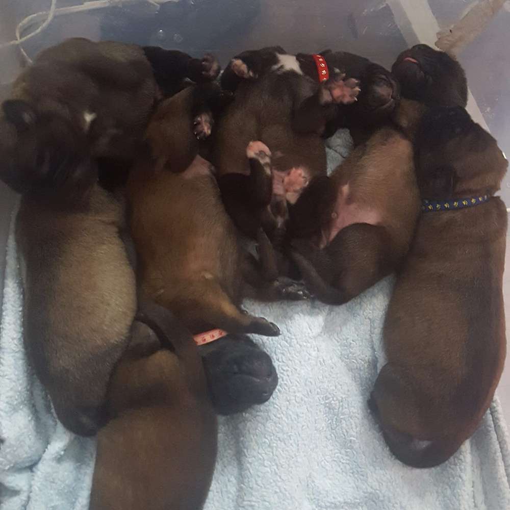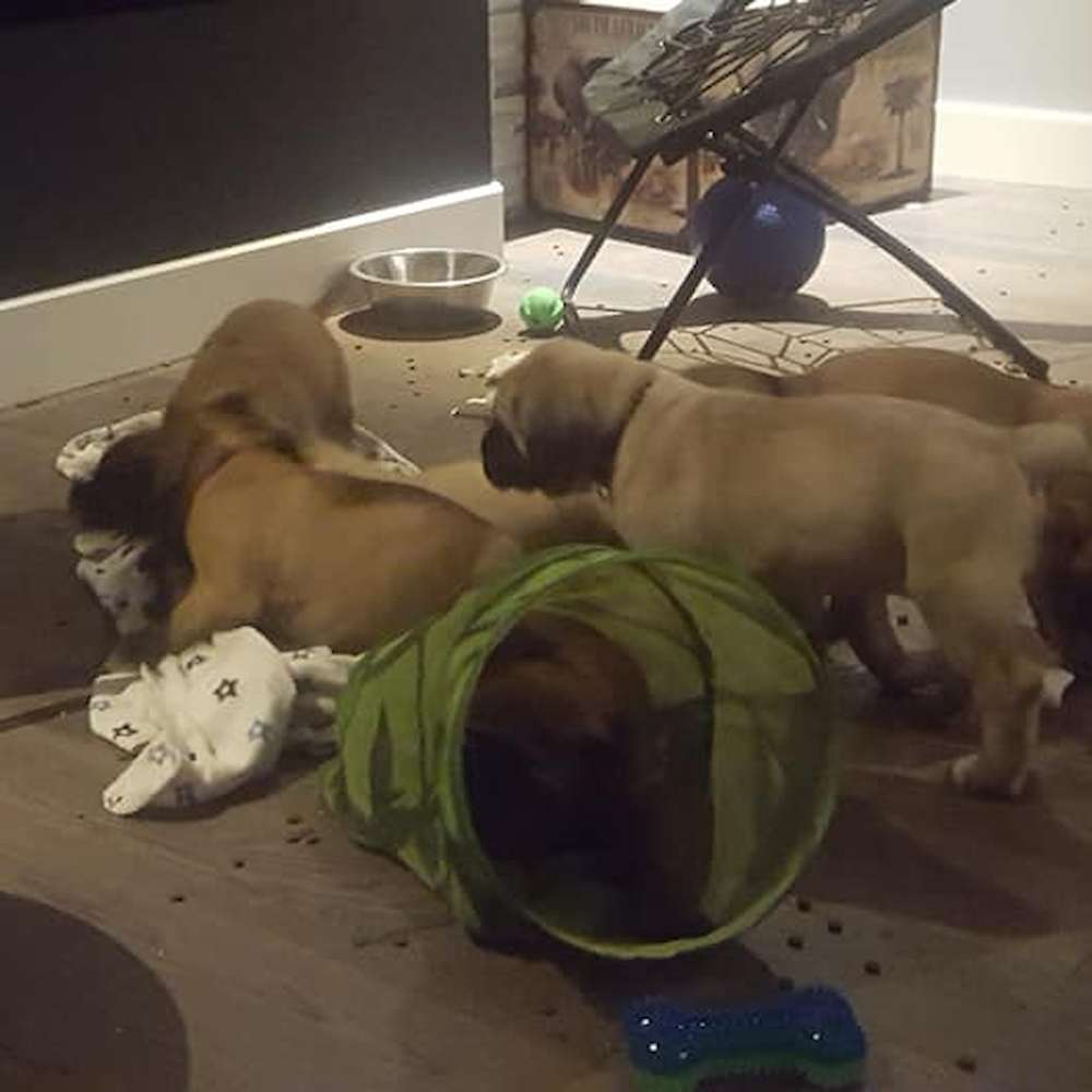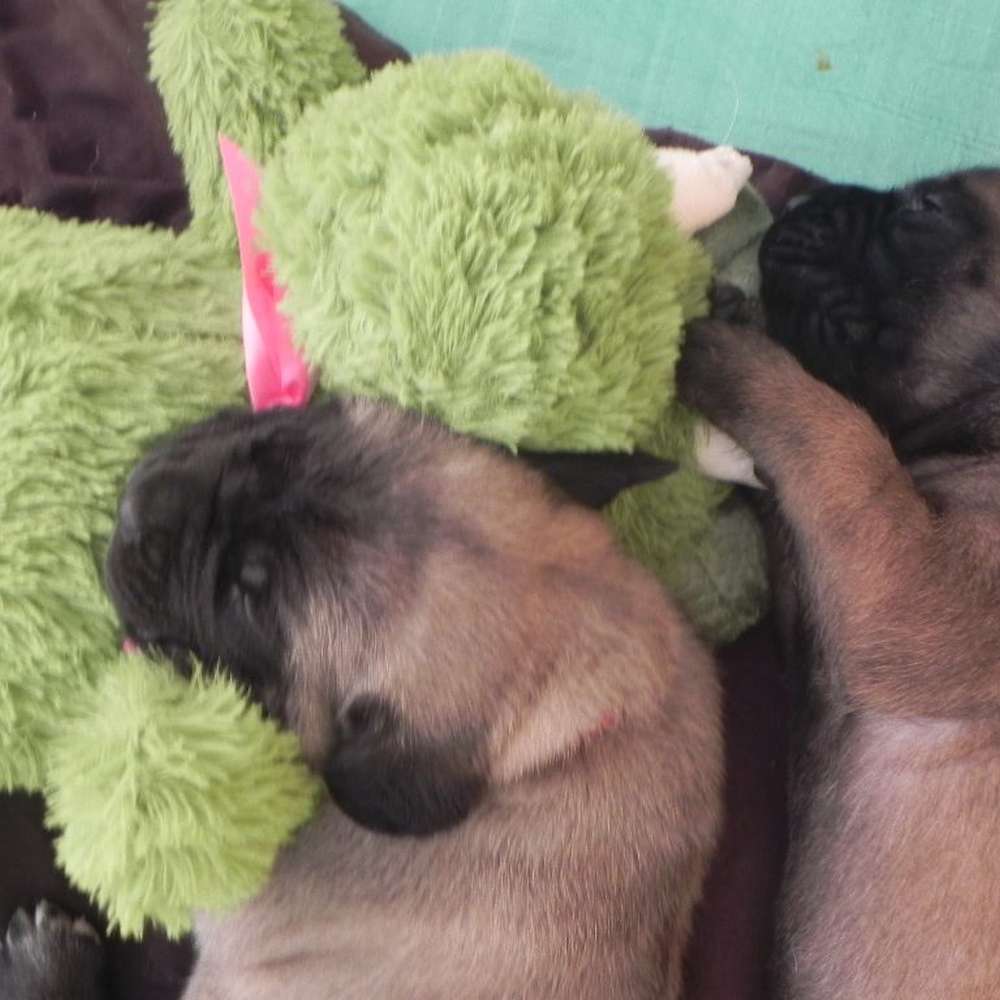 Our beautiful litter was born on December 27th, 2018. We were only expecting 7 to 8 puppies but Einstein surprised us with 13 beautiful puppies. Unfortunately, one, our sweet Captain Holly, passed away and left us with 12 healthy puppies. The rest grew quickly and happily and went on to their own families. The litter consisted of 7 boys and 6 girls and included: