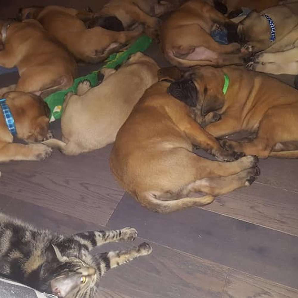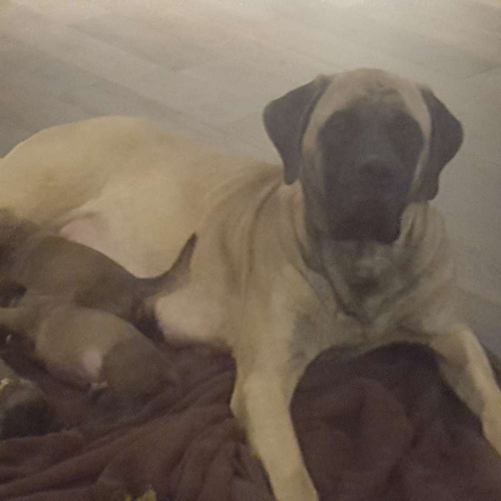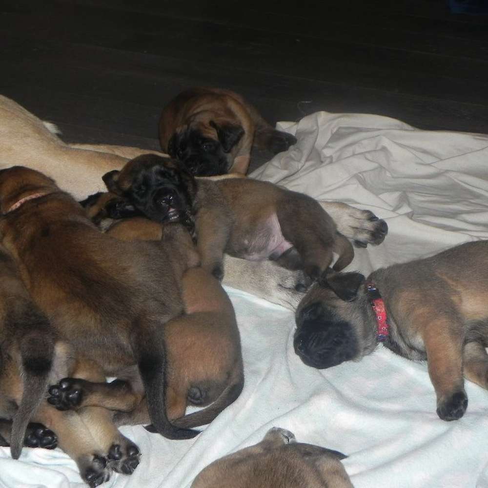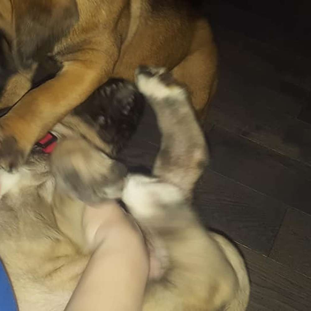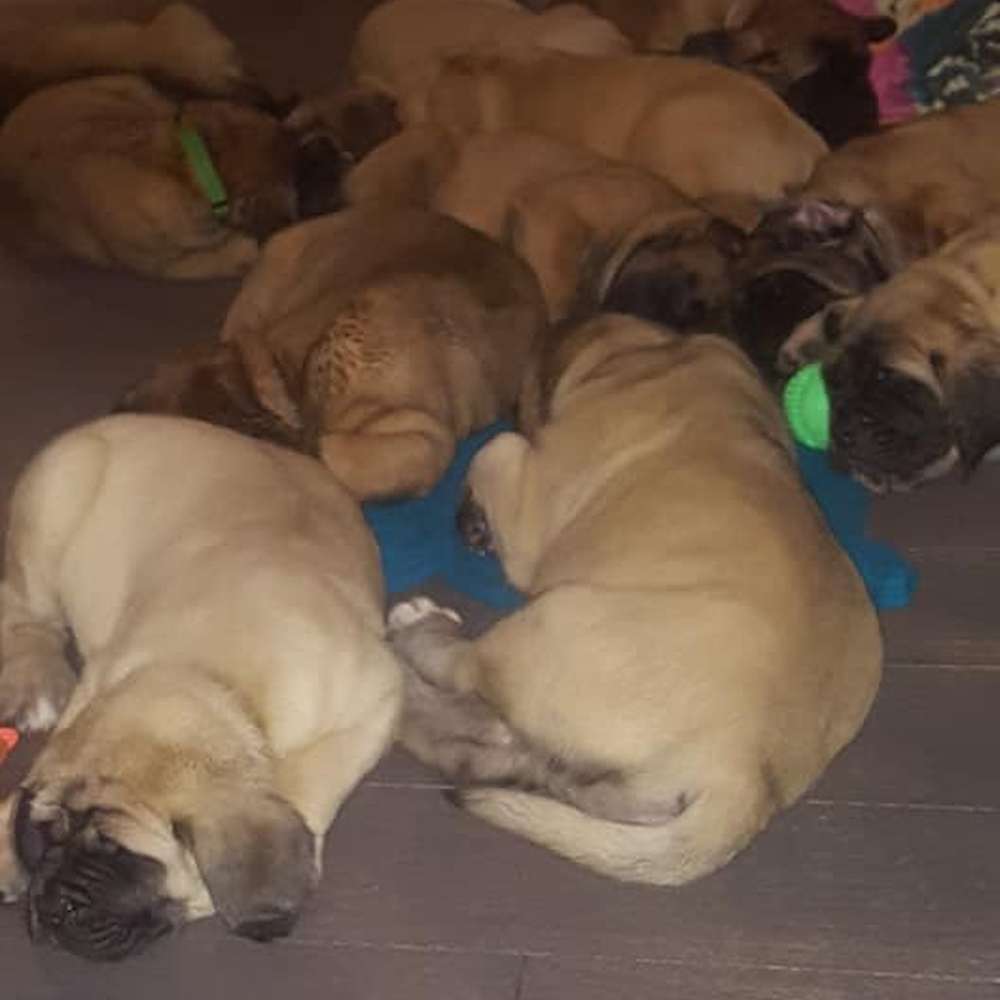 Our beautiful litter was born on December 27th, 2018. We were only expecting 7 to 8 puppies but Einstein surprised us with 13 beautiful puppies. Unfortunately, one, our sweet Captain Holly, passed away and left us with 12 healthy puppies. The rest grew quickly and happily and went on to their own families. The litter consisted of 7 boys and 6 girls and included: