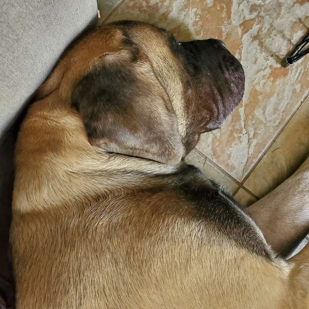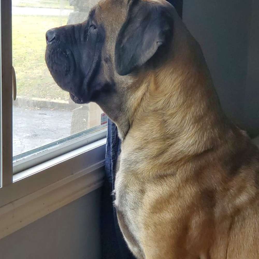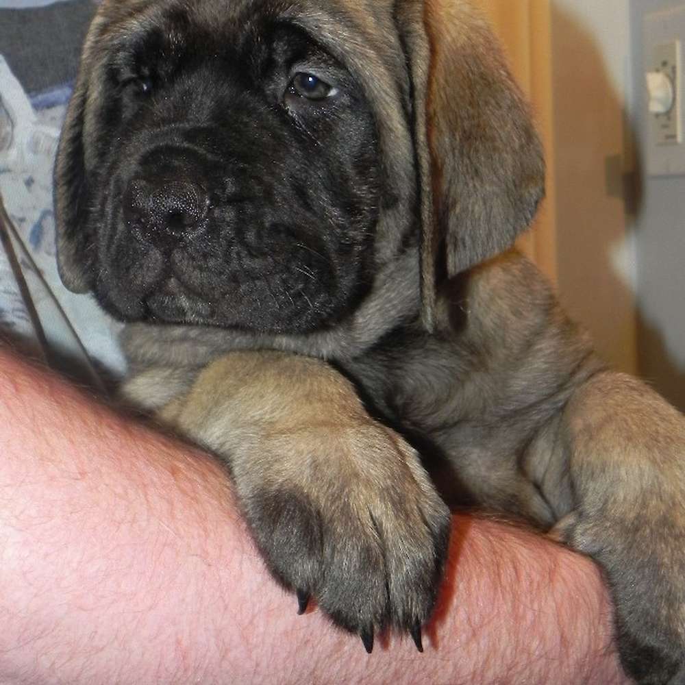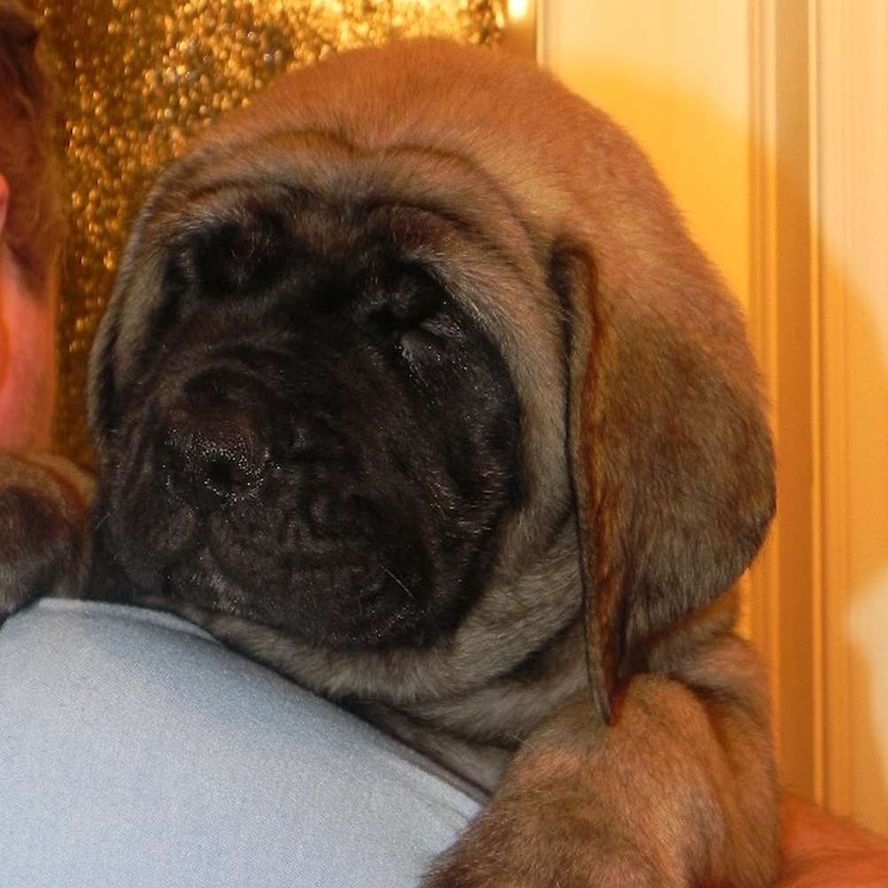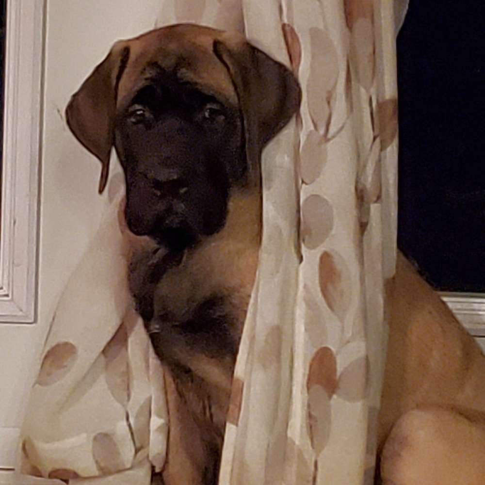 Tulip is sweet and playful with a very mastiff temperament. She loves everyone and everyone loves her. Like all of our dogs, she is happiest when she is with us than when she isn't and she's part of our day to day life. She has cute little quirks, such as pressing her mouth against people's lips to give them dry kisses and her constant war with the squirrels and doves in the backyard.