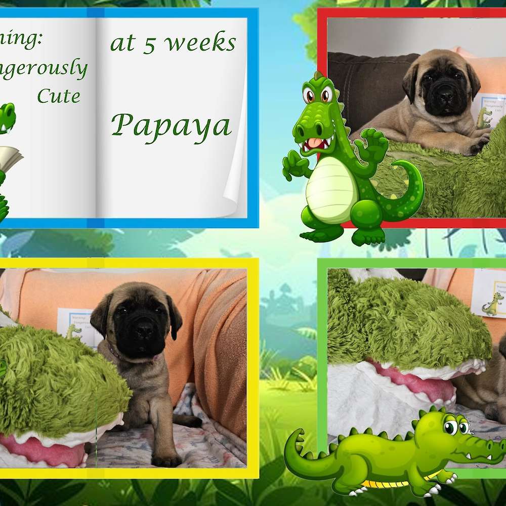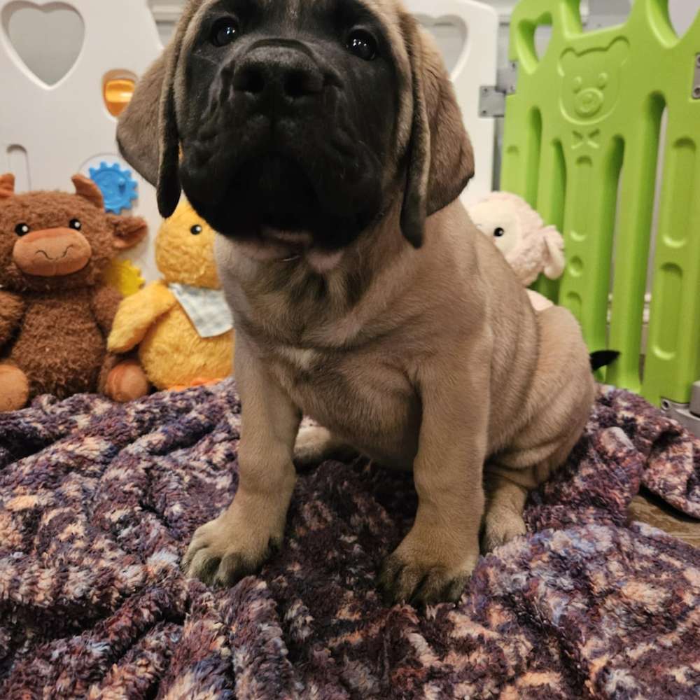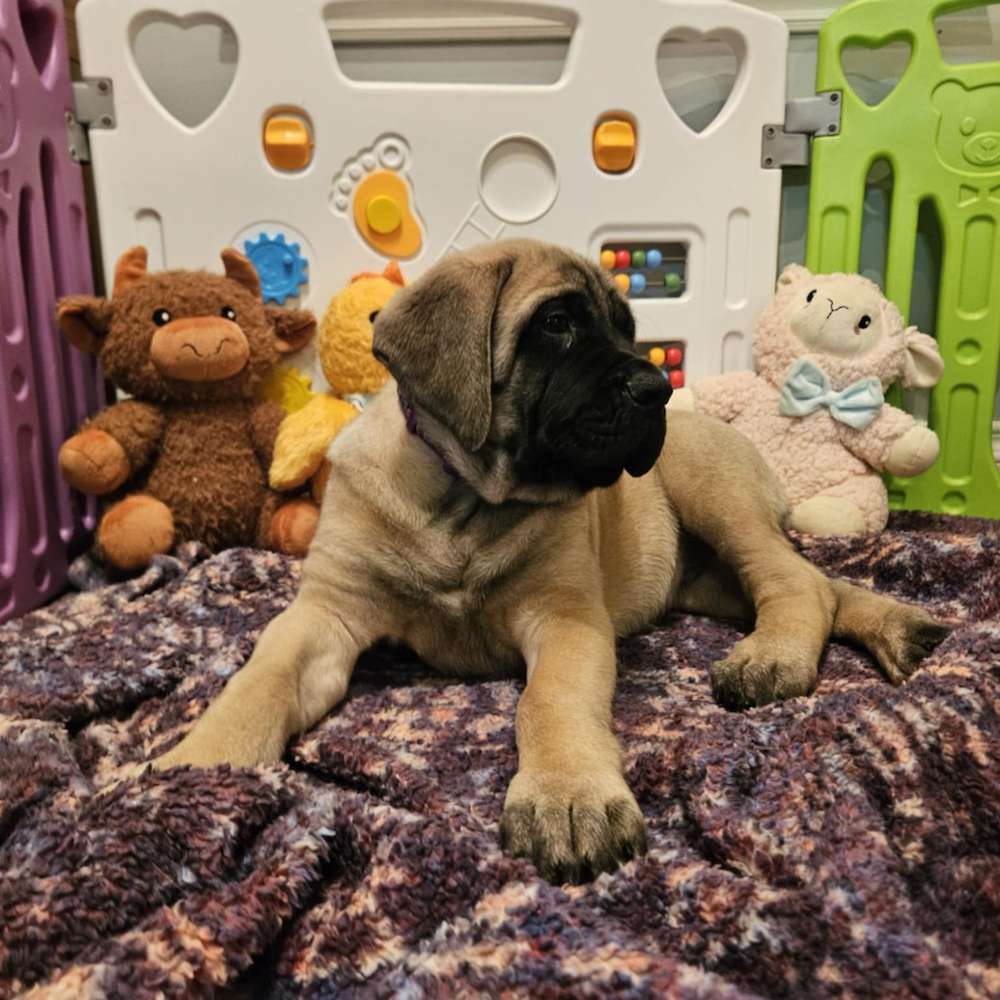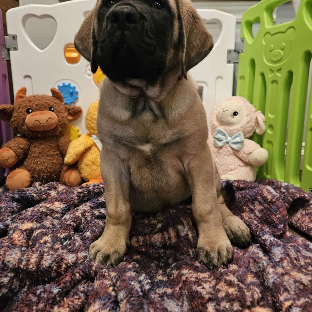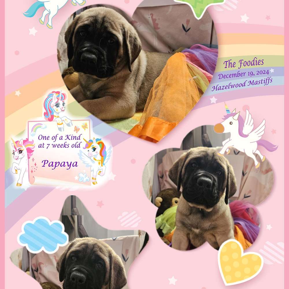 However, Buttercup, originally known as Papaya in the litter theme, showed from a very early age that she was the show stopping puppy. We had her assessed by a number of long time Mastiff breeders and handlers and all of them felt she was the number one puppy in the litter in regards to conformation. And really, after the moment she was born, with her little personality shining through, there was no way she was leaving.