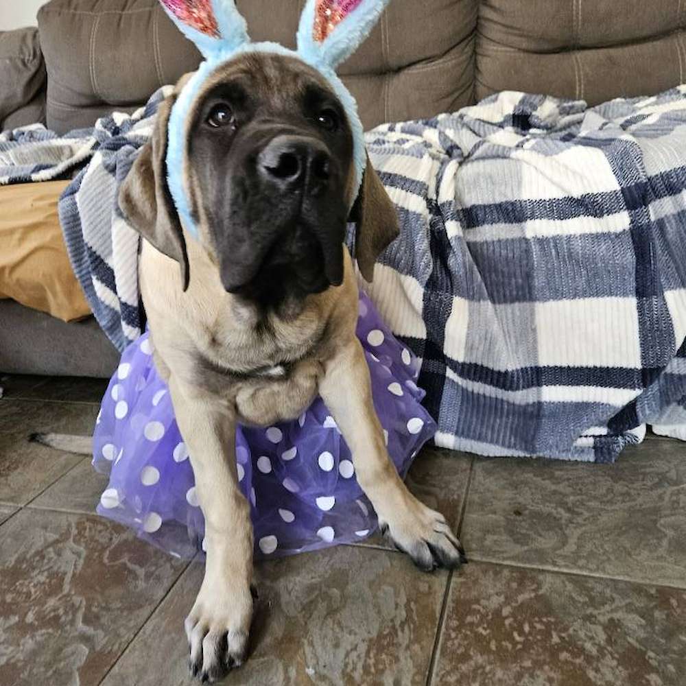 In fact, she has already shown that she is the complete package with beauty and brains, having earned her Novice Trick Dog title at 11 weeks old! Tied as the youngest Mastiff in Canada to earn it with her brother. And she earned her Novice Trick Dog Masters title at 15 weeks of age. She has definitely been busy and will continue with trick titling as well as other performance titles as she grows up.