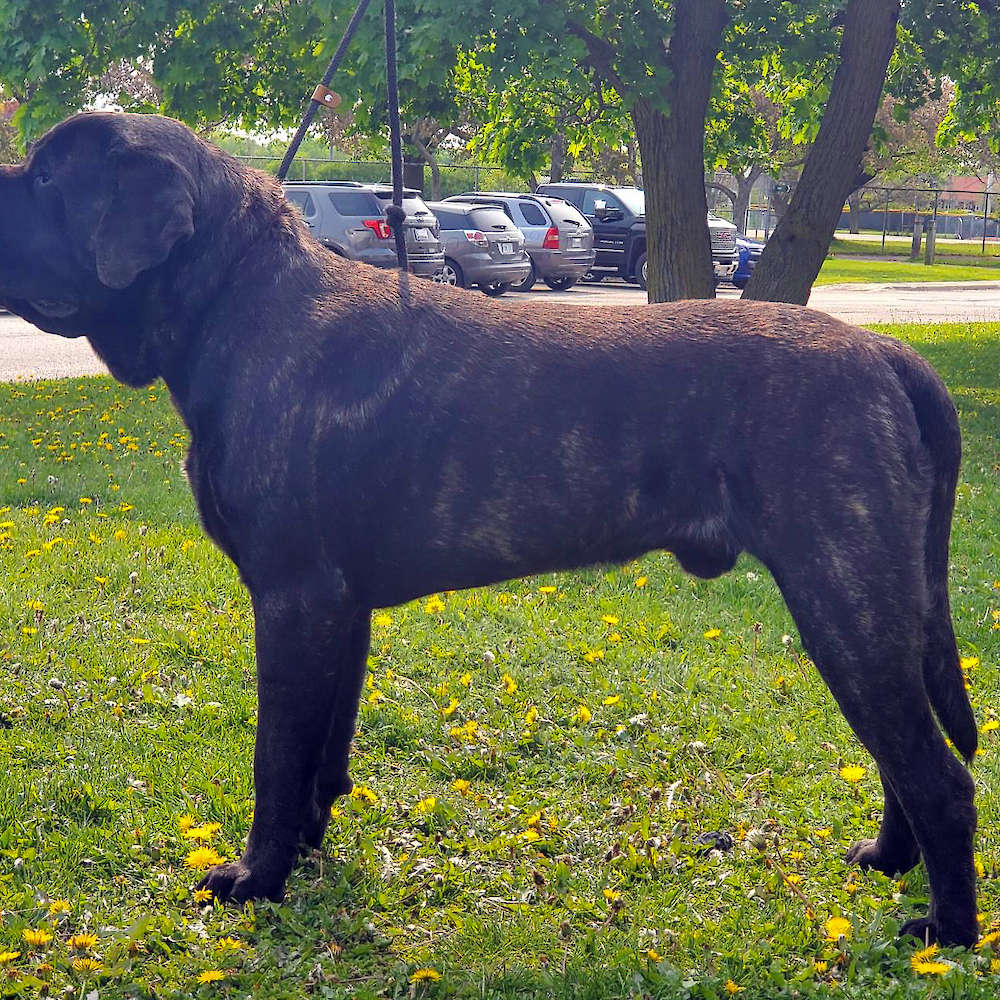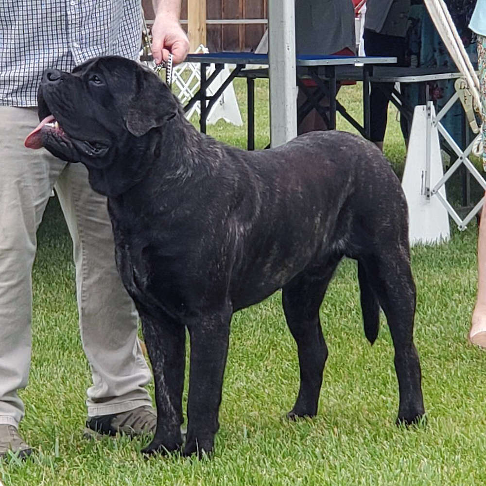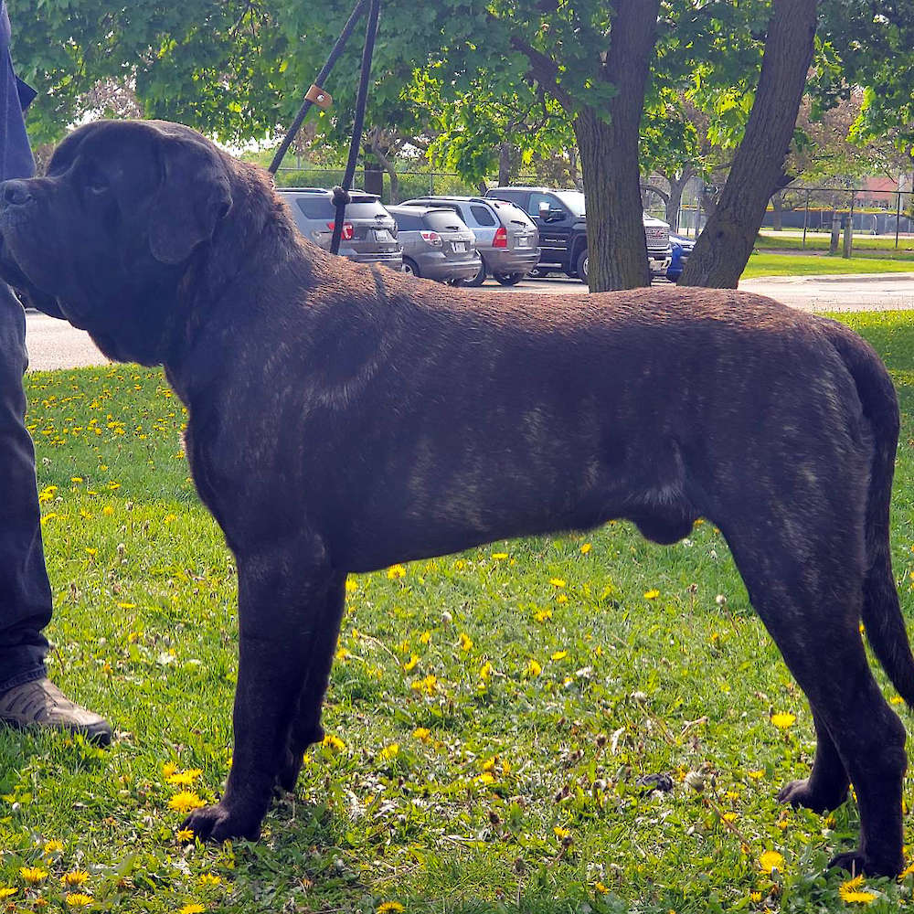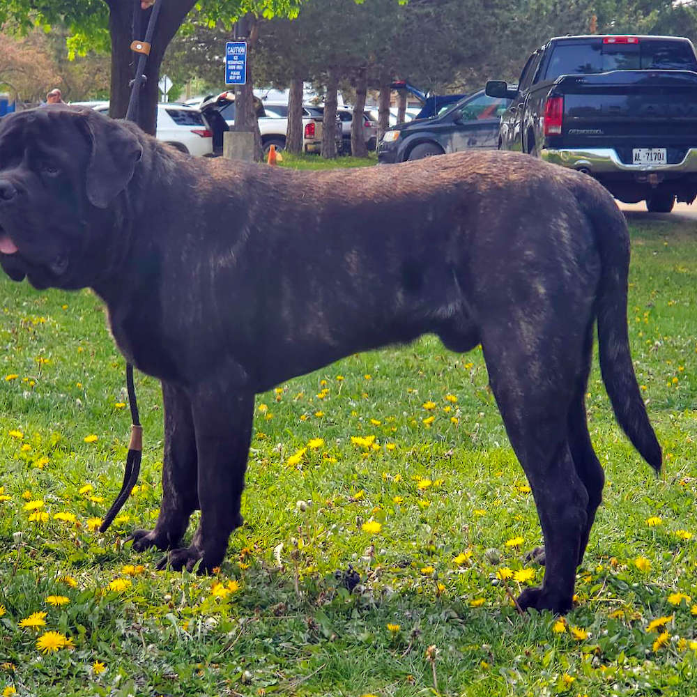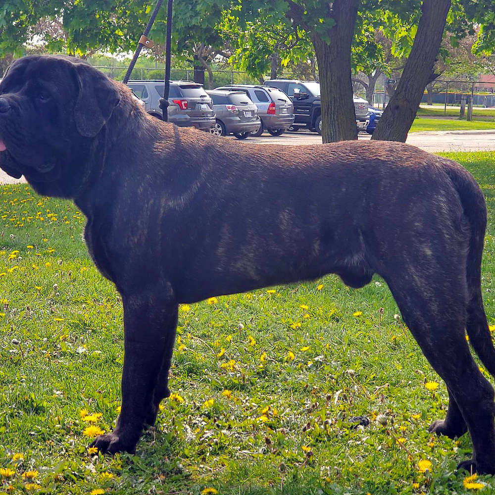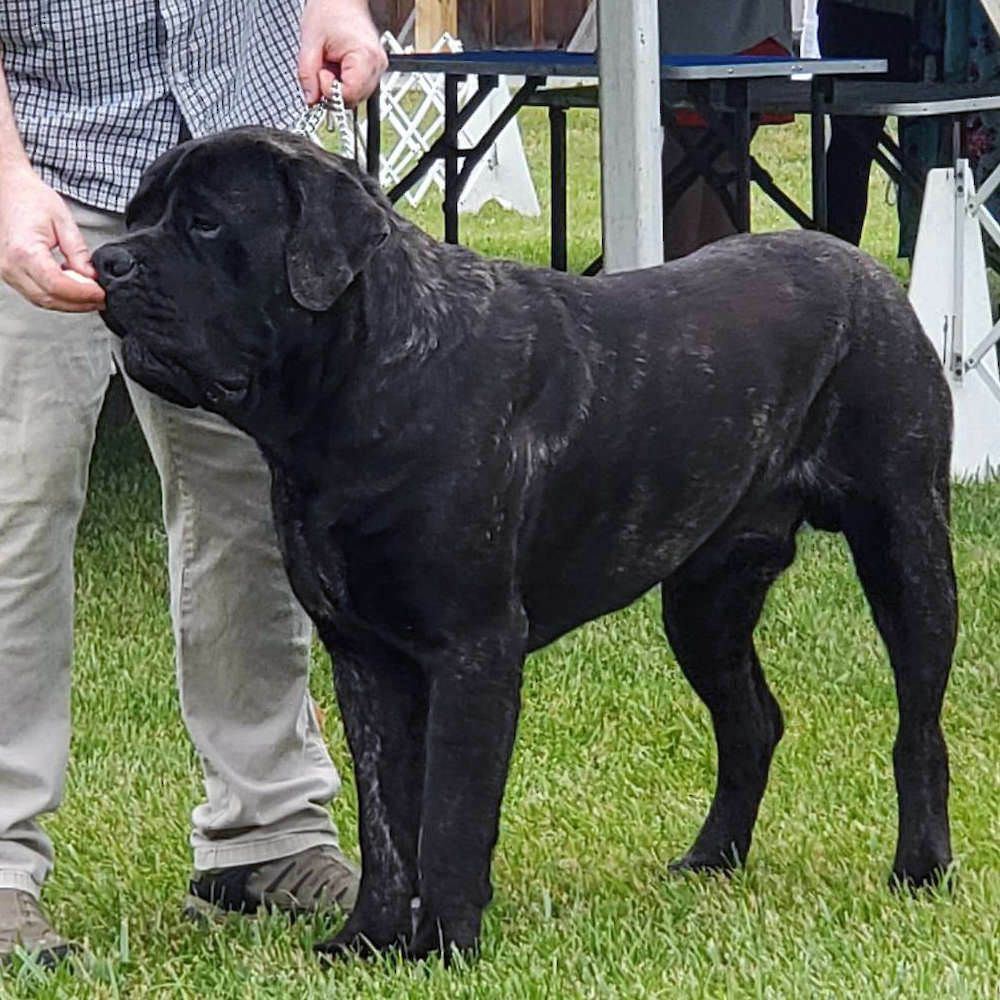 Thank you to Weiler's Mastiffs for trusting this boy to us. We couldn't be happier with him. He has an amazing, friendly temperament that we expect from mastiffs and he has truly shone where he goes. His dark colouring is perfect and we hope to continue on this tradition of high quality brindles that is entrusted to us through Frank.