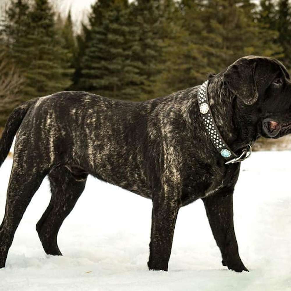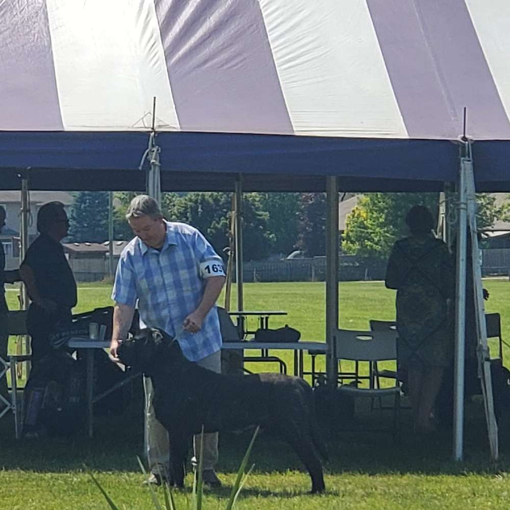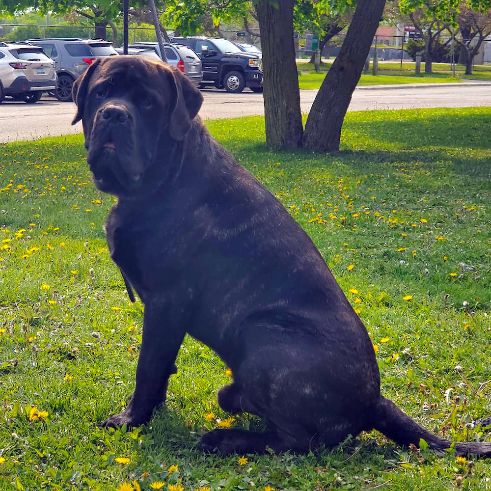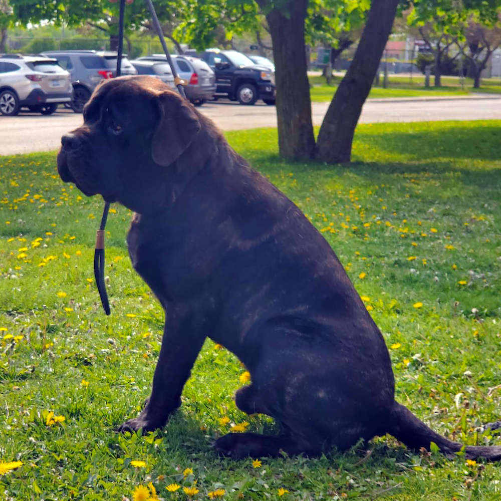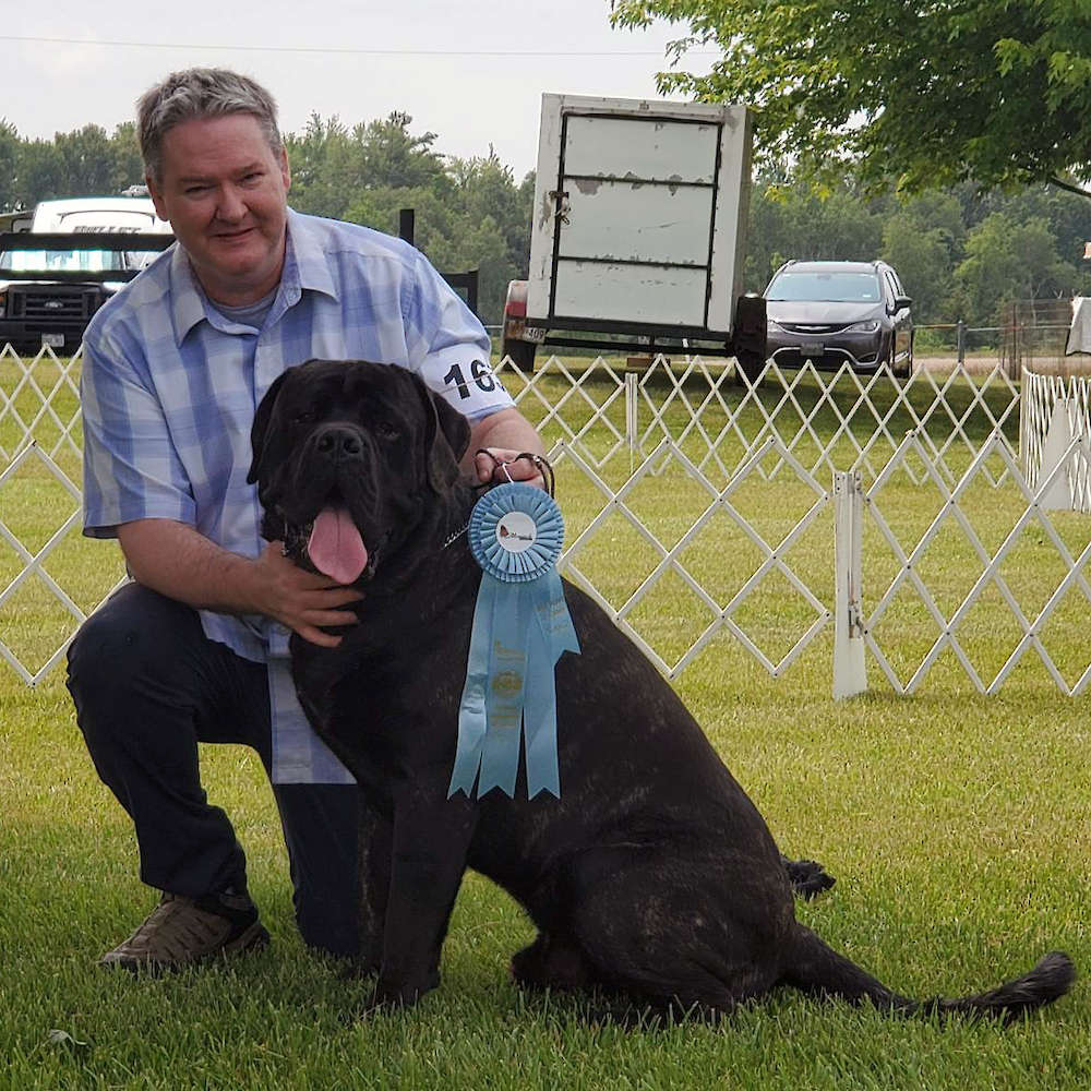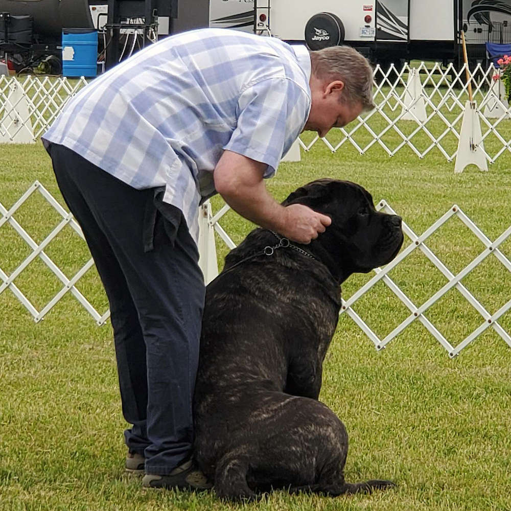 Thank you to Weiler's Mastiffs for trusting this boy to us. We couldn't be happier with him. He has an amazing, friendly temperament that we expect from mastiffs and he has truly shone where he goes. His dark colouring is perfect and we hope to continue on this tradition of high quality brindles that is entrusted to us through Frank.